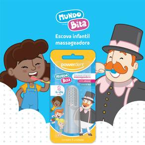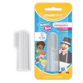 A escova infantil Massageadora Powerdent Mundo Bita é perfeita para uma higiene delicada na boca do bebê. Desenvolvida em silicone totalmente atóxico, livre de BPA e com uma textura ultramacia, é ideal para aliviar o desconforto no nascimento dos primeiros dentinhos.Como usar:Passo 1: Insira o seu dedo indicador no massageador.Passo 2: Escove cuidadosamente os dentes e/ou a gengiva do bebê.Informações importantes:Visite seu dentista regularmente, ele indicará o melhor tipo de escova para a criança. O uso do produto deve ser supervisionado por um adulto. Declarado isento de registro pelo Ministério da Saúde. Não compre se a embalagem estiver violada. Conserve em local limpo, fresco e seco.Composição:SiliconeMundo Bita © Mr. Plot Produções. Todos os direitos reservados.