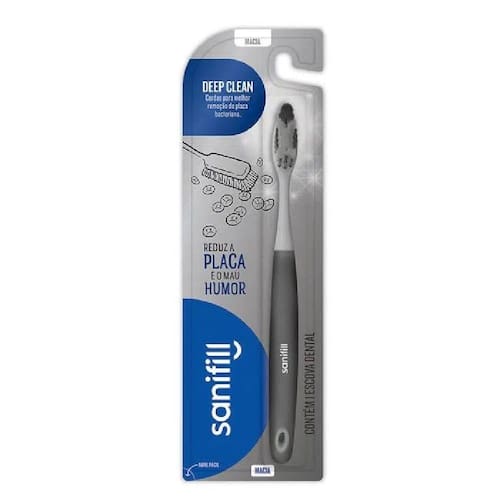 A Escova de Dente Sanifill Deep Clean foi especialmente desenvolvida para limpar profundamente as áreas de mais difícil acesso nos dentes, como os posteriores. Ela possui super tufos de cerdas concentradas e de pontas elevadas que permitem a maior acessibilidade a áreas dos dentes para a remoção da placa bacteriana, resíduos de alimento e caries.