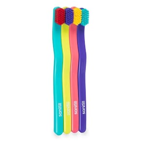 ESCOVA DENTAL SANIFILL INFINITE EXTRA MACIA Sorria sem limite infinite. Promove limpeza eficaz. Milhares de cercas concentradas em super tufos. Cerdas de pontas arredondadas e macias para conforto na Marca: Não Informado