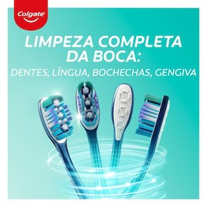 Benefícios: A escova possui pontas limpadoras elevadas que limpam as áreas de difícil alcance entre e atrás dos dentes A escova possui cerdas macias e polidoras A escova possui cabeça compacta, possibilitando o alncance em áreas de difícil acesso A escova possui cabo com plástico 25% reciclado A escova possui limpador de língua e bochechas A escova possui a tecnologia 360: promove uma limpeza completa e simultânea dos dentes, gengiva e bochecha
