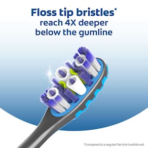 — A escova de dentes macia oferece um alcance 4 vezes mais profundo entre os dentes e ao longo da linha da gengiva (em comparação com uma escova de dentes comum de corte plano).