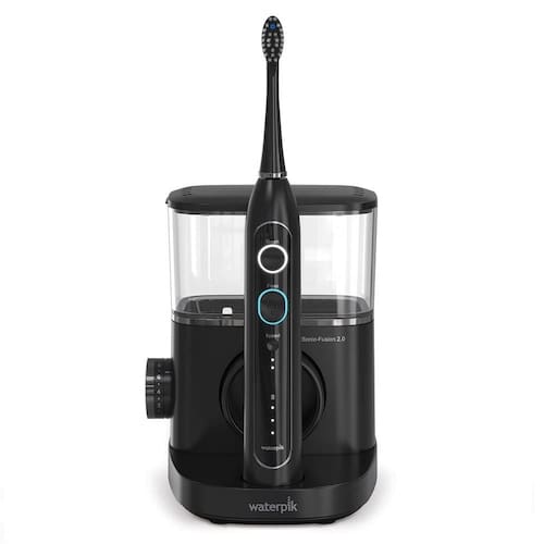 Escova de dentes profissional com fio dental Waterpik Sonic-Fusion 2.0, combinação de escova de dentes elétrica e fio dental aquático em um, preta - A ESCOVA DE DENTES QUE USA FIO DENTAL PARA VOCÊ: A escova de dentes com fio dental Waterpik Sonic-Fusion Professional combina o poder de uma escova de dentes elétrica sônica avançada com a eficácia comprovada do fio dental Waterpik Sonic-Fusion Professional. - 3 MODOS: Com o toque de um botão, você pode escovar, usar fio dental ou fazer as duas coisas, facilitando a conclusão de sua higiene bucal com um dispositivo conveniente. Está clinicamente comprovado que é até duas vezes mais eficaz do que a escovação tradicional e o uso do fio dental para reduzir a placa bacteriana e melhorar a saúde das gengivas. - RECOMENDADO PELO DENTISTA: 9 em cada 10 profissionais de odontologia recomendam a marca Waterpik. A Waterpik é clinicamente comprovada e é a primeira marca de fio dental aquático a receber o selo de aceitação da American Dental Association (ADA). - CARACTERÍSTICAS PRINCIPAIS: A alça recarregável carrega na base e inclui um temporizador de escovação de 2 minutos com marcapasso de 30 segundos, 2 velocidades de escova de dentes e indicador de recarga; o fio dental elétrico embutido inclui 10 configurações de pressão (10-100 PSI). - INCLUÍDO: escova de dentes profissional Sonic-Fusion 2.0, reservatório removível de 16 onças para facilitar a limpeza e o enchimento, 2 cabeças de escova de fio dental (1 compacta, 1 tamanho grande), 2 tampas de cabeça de escova, estojo de viagem para escova de dentes, voltagem global de 100-240 VAC, 50/60 Hz. - GARANTIA E SUPORTE: Apoiado por uma garantia limitada do fabricante de 3 anos, consulte o manual para obter detalhes. A equipe de suporte da Waterpik no Colorado está disponível para ajudar com qualquer dúvida ou necessidade do produto.