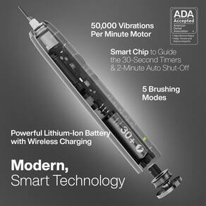 O que vem na caixa: 1 escova de dentes AquaSonic Vibe Series Pro, 1 base de desinfetante UV e carregamento sem fio, 6 cabeças de escova ProFlex, 1 estojo de viagem, manual do usuário e cartão de garantia. - Resultados profissionais: a melhor escova de dentes inteligente do mundo acabou de ficar melhor. O Vibe Series Pro inclui tecnologia de última geração, incluindo recursos como um potente motor de 50.000 vibrações por minuto, 5 modos exclusivos, incluindo modos para clarear os dentes e melhorar a saúde das gengivas e temporizadores inteligentes integrados para ajudar você a escovar de forma eficiente. Uma base higienizante UV usa luzes UV cronometradas automaticamente para ajudar a higienizar as cerdas após suas sessões de escovação. - Tecnologia avançada aprovada pela American Dental Association – 5 modos exclusivos, incluindo "Limpo", "Macio", "Branque", "Massagem" e "Limpeza Profunda" garantem cuidados bucais completos e não apenas limpar os dentes. Recursos aprimorados como um motor de 50.000 VPM, temporizador de notificação de 30 segundos, temporizador automático de 2 minutos e classificação IPX7 à prova d'água tornam o Vibe Series Pro tão poderoso quanto elegante. A Vibe Series Pro ganhou o prestigiado selo ADA em mostrar eficácia na remoção de placa bacteriana e prevenção da gengivite. - Mantenha as cabeças de escova limpas com higienização UV – A higiene é tão importante como nunca e enxaguar as cabeças das escovas faz pouco para matar germes orais que sobraram. O Vibe Series Pro resolve esse problema usando uma câmara de higienização UV com tempo automático para manter os germes afastados entre as sessões de escovação. O estojo de viagem incluído garante que sua escova de dentes permaneça limpa e protegida durante a viagem. - 6 cabeças de escova ProFlex incluídas – cabeças de escova ProFlex precisamente anguladas incluem cerdas que são mais firmes no centro e mais macias ao longo do perímetro. Isso significa que você pode ser mais resistente com manchas superficiais enquanto permanece mais suave em suas gengivas ao mesmo tempo. Cada cabeça de escova dura 3 meses para que você possa esquecer os recargas caras por 1,5 anos. - O que vem na caixa: 1 escova de dentes AquaSonic Vibe Series Pro, 1 base de desinfetante UV e carregamento sem fio, 6 cabeças de escova ProFlex, 1 estojo de viagem, manual do usuário e cartão de garantia.