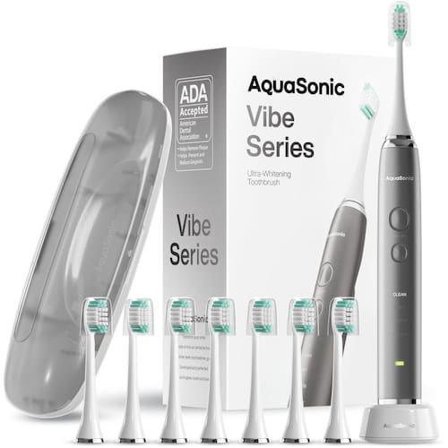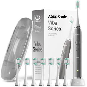 Série vibrante - Escova de dentes inteligente de 40.000 VPM – Beleza, inteligência e potência. A série AquaSonic Vibe é uma escova de dentes elétrica moderna de classe mundial embalada com a tecnologia mais moderna em cores elegantes e impressionantes. Possui um motor ultra potente e líder do setor que produz 40.000 vibrações por minuto, carregamento sem fio ultrarrápido, operação em 4 modos, temporizadores de vibração inteligentes, 8 cabeças de escova projetadas pela DuPont e um estojo de viagem; tudo com um design elegante ultrafino, leve e à prova d'água IPX7. - Aceito pelo Conselho de Assuntos Científicos da American Dental Association (ADA) – Colocamos nosso dinheiro onde está sua boca. Investir em tecnologias de higiene bucal premium rendeu à série Vibe o prestigioso selo de aprovação ADA. Ele demonstrou eficácia na remoção de placa bacteriana e ajuda a prevenir e reduzir a gengivite. A série Vibe vai além de apenas limpar os dentes – oferece cuidados bucais completos com modos exclusivos que incluem um para clarear e polir os dentes e um para melhorar a saúde das gengivas. - Tecnologia moderna para cuidados bucais completos: a série Vibe traz as escovas de dentes aos tempos modernos com seus recursos aprimorados integrados. Carregamento sem fio ultrarrápido (esqueça o carregamento USB barato), 4 modos de escovação distintos e um temporizador de notificação vibratório inteligente são alguns dos recursos aprimorados embutidos na elegante alça metálica de carvão à prova d'água e ultramoderna. - 8 cabeças de escova DuPont e estojo de viagem incluídos – Inclui 8 cabeças de escova projetadas pela mundialmente famosa DuPont; líder mundial em qualidade e ciência de materiais. Cada cabeça de escova dura 3 meses, então 8 duram 2 anos. Também está incluída uma conveniente capa rígida personalizada feita de plástico livre de BPA com espaço para duas cabeças de escova. A série Vibe pode durar 4 semanas inteiras (2 min/2 x por dia) com carga total, por isso é perfeita para viagens em movimento com o estojo de viagem incluído. - Conteúdo da embalagem: 1 escova de dentes inteligente metálica carvão, 8 cabeças de escova DuPont, 1 estojo de viagem personalizado, manual do usuário (sem garantia de versão em português).