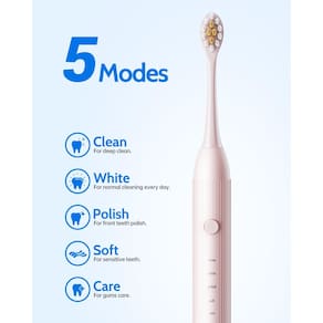 Pacote com 2 escovas de dentes elétricas: nosso pacote inclui 2 escovas de dentes elétricas sônicas e 12 cabeças de escova de substituição de cerdas macias. Prometemos: garantia de 1 ano, se você tiver algum problema, , forneceremos um atendimento ao cliente satisfatório. - Pacote com 2 escovas de dentes elétricas: nosso pacote inclui 2 escovas de dentes elétricas sônicas e 12 cabeças de escova de substituição de cerdas macias. Prometemos: garantia de 1 ano, se você tiver algum problema, , forneceremos um atendimento ao cliente satisfatório. - Limpeza sônica potente: nova escova de dentes elétrica atualizada com a mais recente tecnologia sônica. A frequência de vibração pode alcançar até 38.000 vezes por minuto, ao longo da linha da gengiva para uma limpeza excepcional e remove 100% das placas, clareando seus dentes e melhorando sua saúde bucal em duas semanas melhor do que uma escova de dentes manual. escova de dentes elétrica infantil - O conjunto inclui 12 cabeças de escova de substituição: capaz de limpar profundamente as lacunas dos dentes; o design da extremidade arredondada é suave e seguro para as gengivas. As escovas de dentes elétricas para adultos e crianças estão equipadas com 12 cabeças de escova e têm uma vida útil de 24 meses. Você não precisa fazer compras frequentes. Lembre-se de verificar se o saco de vedação da cabeça da escova foi aberto antes de usar. Cada uma das nossas cabeças de escova é embalada individualmente. As cerdas podem deformar durante o transporte. Em água morna acima de 48 graus, as cerdas retornarão ao seu estado autêntico em 20 segundos. - 5 modos de escovagem de alto desempenho: limpeza (forte), clareamento (suave), polimento (forte frequência de reversão), macio (frequência de reversão suave) e cuidado (macio), adequado para diferentes condições de dentes e gengivas, para que você possa escolher diferentes modos de acordo com suas preferências e conselhos do dentista. Em comparação com outras escovas de dentes, pode remover 10 vezes mais placa em áreas difíceis de alcançar, alcançando uma limpeza profunda. - Temporizador de 2 minutos e lembrete de pausa de 30 segundos: equipado com um temporizador inteligente de 2 minutos integrado, a limpeza dos dentes é mais eficiente e abrangente. A cada 30 segundos, ele lembra você de passar para o próximo quadrante da sua boca, o que leva um total de 2 minutos (4 quadrantes). Este é o método de escovação recomendado por dentistas profissionais. Você também pode pressionar e segurar o botão por 2 segundos para desligar a escova de dentes elétrica em qualquer modo.