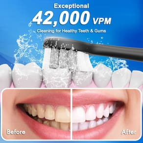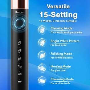 Escova de dentes elétrica para adultos e crianças -?Escova de dentes elétrica para crianças e adultos?Nossa escova de dentes elétrica premium foi projetada com ergonomia excepcional para fornecer a melhor experiência de escovação para usuários de todas as idades. Projetada com tecnologia avançada e uma abordagem cuidadosa e centrada no usuário, essa escova de dentes se encaixa confortavelmente na mão, permitindo uma fácil manobrabilidade ao redor da boca. -?Design versátil de 15 modos?Esta escova de dentes elétrica oferece aos usuários uma experiência de limpeza ainda mais versátil e personalizável. Os 5 modos principais, cada um com 3 configurações de intensidade, permitem que os usuários atendam com precisão às suas necessidades específicas de saúde bucal, seja limpeza completa, clareamento, cuidado gengival ou escovação suave com foco na sensibilidade. Esse nível de personalização aprimora ainda mais a capacidade do produto de oferecer resultados de limpeza excepcionais, adaptados às necessidades individuais do usuário. -?Longevidade e conveniência excepcionais?Oferecendo 30 meses de uso com 10 cabeças de escova de reposição (cada uma com duração de 3 meses), este conjunto abrangente de acessórios também inclui 1 estojo de viagem, 1 cabo de carregamento USB, 1 manual do usuário e 1 suporte para escova de dentes. Isso garante valor e conveniência excepcionais a longo prazo, mantendo os usuários bem equipados para uso prolongado sem a necessidade de comprar novas cabeças de escova com frequência. -?Remoção avançada de placa?Alimentada por um eixo de metal, a escova de dentes elétrica Kuicur utiliza a mais recente tecnologia de vibração sônica para oferecer um desempenho de limpeza excepcional. Atingindo até 42.000 vibrações por minuto, esse movimento sônico de alta frequência está muito além das capacidades das escovas de dente elétricas tradicionais. As vibrações sônicas acionadas por metal desalojam efetivamente a placa bacteriana e os restos de comida, proporcionando uma limpeza profunda e completa. -?CRONÔMETRO INTELIGENTE DE NOTIFICAÇÃO VIBRATÓRIA?Controle de cronômetro inteligente integrado, intervalo de 30 segundos lembrando você de passar para o próximo quadrante da boca e totalmente em 2 minutos (4 quadrantes), o que é altamente recomendado por dentistas profissionais, como forma correta de escovação.