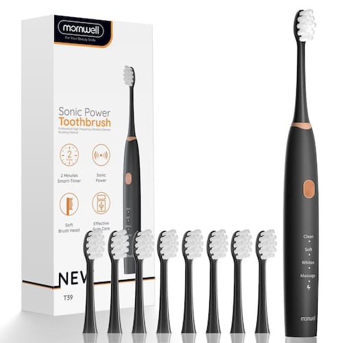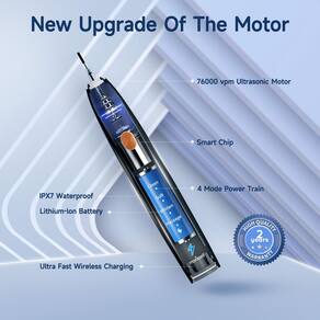 [Potência de limpeza 5x mais eficaz]: a escova de dentes elétrica sônica oferece uma limpeza profunda e completa que é 5 vezes mais eficaz do que escovas de dentes elétricas de baixa frequência para adultos. Diga adeus a 99,99% da placa. A escova de dentes sônica que proporciona impressionantes 41.000 vibrações de alta frequência por minuto pode ajudar a remover a placa. - Gengivas mais saudáveis: experimente o máximo poder de limpeza com nossa escova de dentes elétrica Fairywill, com um motor líder que produz 76.000 vibrações por minuto (vpm). Esta escova de dentes elétrica sônica remove efetivamente até 99,99% da placa, oferecendo um efeito de limpeza 10x em comparação com escovas de dentes manuais e 6 vezes mais do que escovas de dentes elétricas comuns para adultos - 8 cabeças de escova de substituição para 2 anos de uso – nossa escova de dentes recarregável para adultos vem com 8 cabeças de escova DuPont de alta qualidade, projetadas para durar dois anos. O formato "W" e as cerdas de alta densidade penetram profundamente nas gengivas, removendo manchas difíceis. Colares de cores diferentes permitem que os membros da família identifiquem facilmente suas cabeças de escova, garantindo que todos saibam quando substituir as deles - Carregamento rápido e longa vida útil da bateria: esta escova de dentes sônica carrega rapidamente via USB e oferece até 90 dias de uso em uma carga completa (usando 2 minutos, duas vezes por dia). Pesando apenas 55 g, é leve e perfeito para viagens. Além disso, a classificação IPX7 à prova d'água significa que é seguro enxaguar após cada uso - 4 modos de alto desempenho: sob medida para suas necessidades, nossa escova de dentes elétrica para adultos possui 4 modos: branquear, limpar, macio e massageador. O modo de clareamento vibra a 76.000 movimentos por minuto para lidar com manchas difíceis, enquanto o modo de limpeza penetra profundamente entre os dentes. O modo de massagem estimula suavemente as gengivas para uma saúde ideal - Temporizador de notificação vibratória inteligente – Nossa inovadora escova de dentes elétrica sônica inclui um chip inteligente que pausa a cada 30 segundos, guiando você através de cada quadrante da sua boca. O temporizador automático garante que você escove os 2 minutos recomendados pelo dentista, promovendo um sorriso mais saudável sem esforço - À prova d'água IPX7 e o que está incluído – com seu design à prova d'água IPX7, esta escova de dentes elétrica para crianças e adultos pode ser usada no chuveiro. O pacote inclui: 1 escova de dentes elétrica, 8 cabeças de escova DuPont, 1 cabo USB e 1 manual de instruções (sem garantia de versão em português)
