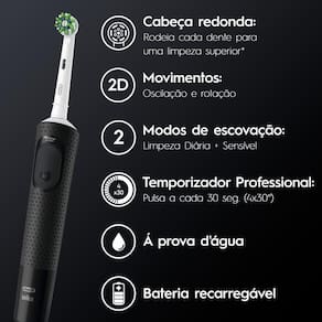 Oral-B marca n. 1 em todo mundo! A escova recarregável com timer, se adapta para lograr uma limpeza profunda em uso. A escova de dentes Oral-B Pro Series 2 oferece uma limpeza clínicamente comprovada, mais intensa o que uma escova manual. Com 2 modos de Escobado: Limpeza diaria e sensivel, para uma experiencia mais suave. Inclui um prático timer no cabo, que ajuda você a escovar os dentes pelos 2 minutos recomendados pelo dentista. Não há nada melhor do que ter alguém em quem você confia quando se trata de higiene bucal, a Oral-B tem tudo sob controle.? Ean: 4210201445968