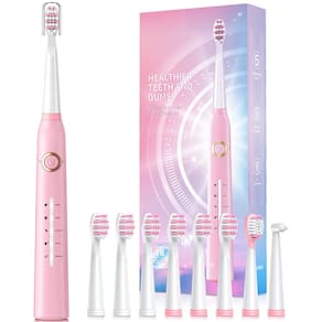 Solução perfeita para seus problemas orais. 10 vezes mais eficaz do que uma escova de dentes manual. 3 vezes mais eficaz do que escovas de dentes elétricas comuns. Principais características: 8 cabeças de escova substituíveis Dupont por 2 anos de uso. Carregamento rápido de 4 horas, dura até 30 dias 5 modos personalizados para atender a todas as suas necessidades diárias de limpeza. Temporizador inteligente de 2 minutos para incentivar um hábito de escovação saudável. Cerda: nylon Dupont - Tensão: tensão global 110V-240V - Tempo de carga: 4 horas para ser totalmente carregado Embalagem: 1 escova de dentes elétrica rosa. 6 cabeças de escova Dupont. 1 cabeça raspadora de língua. 1 cabeça de escova interdental. 1 capa protetora de cerdas. 1 cabo de carregamento USB. 1 manual de instruções (idioma português não garantido) - Potente motor magnético flutuante 40000 limpeza sônica - a escova de dentes sônica elétrica é uma escova de dentes moderna de classe mundial com a mais recente tecnologia. Possui um motor ultra potente e líder do setor que produz 40.000 vibrações por minuto. Clareia seus dentes e melhora sua saúde bucal melhor do que uma escova de dentes manual em duas semanas. - 5 modos de escova de alto desempenho - limpeza, delicada, branqueamento, polimento e massagem. O modo de clareamento ajuda a clarear os dentes usando frequências reversas para soltar manchas na superfície. O modo de limpeza limpa as manchas na superfície do dente por vibração de onda sônica de alta frequência. O modo sensível usa vibração de baixa frequência para limpar os dentes muito suavemente, o que pode resolver o problema de pessoas sensíveis. O modo de polimento clareia os dentes usando frequências invertidas. - 8 cabeças de escova de substituição, design em forma de W - cada cabeça de escova dura 3 meses, então 8 duram mais de 2 anos. Pague menos! Vem com 8 cabeças de escova de substituição para evitar pedir novas cabeças de escova de substituição com frequência. As cerdas são de nylon DuPont, formato W para topografia dentária para limpeza completa das gengivas e áreas difíceis de alcançar. - Escova de dentes recarregável - 30 dias de vida útil da bateria, a escova de dentes usa carregamento USB e pode durar 30 dias de uso normal quando totalmente carregada por 4 horas. Não se preocupe com o carregamento frequente, é muito conveniente para usar em casa ou em viagens. A grande capacidade da bateria no mercado com lembrete de bateria fraca e desligamento automático após totalmente carregada. Carregamento USB ultrarrápido. - Temporizador de vibração inteligente - Controle de temporizador inteligente integrado, intervalo de 30 segundos lembrando você de se mover para o quadrante mais próximo da sua boca e totalmente em 2 minutos (4 quadrantes), o que é altamente recomendado por dentistas profissionais. - IPX7 à prova d'água e o que está incluído - escova de dentes IPX7 à prova d'água, não se preocupe com a vida útil da bateria curta, você pode usá-la na banheira e no chuveiro. Inclui: 1 escova de dentes elétrica, 6 cabeças de escova de dentes Dupont, 1 cabeça raspadora de língua, 1 escova interdental, 1 capa protetora de cerdas, 1 cabo USB, 1 manual de instruções (sem garantia de versão em português)