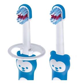 Escova de dente com cerdas extra- macias, as cerdas macias e arredondadas limpas os primeiros dentes e removem placas e bactérias facilmente. A cabeça arredondada adapta-se perfeitamente a pequena boca do bebê.