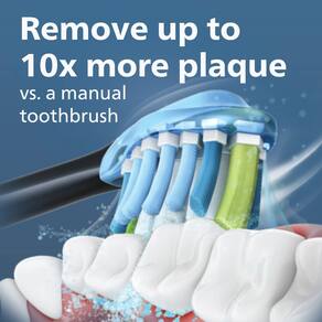 - Remove até 10 vezes mais placa do que uma escova de dentes manual