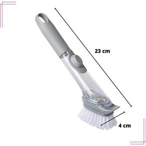 Escova de limpeza com dispenser de detergente louças panela Nosso empenho é procurar o que há de mais atual e funcional no mundo culinário e para organização da sua casa, priorizando sempre a qualidade e a versatilidade dos produtos. Escova de limpeza com dispenser para detergente Que tal lavar as louças de forma prática e higiênica Com essa escova de limpeza você consegue remover facilmente a sujeira e limpar suavemente o fundo de panelas e utensílios antiaderentes sem esforço e sem sujar as mãos. Com um recipiente próprio que armazena o sabão, a escova oferece ainda mais comodidade, possui cerdas de nylon para remoção da sujeira. O formato ergonômico encaixa perfeitamente na mão, tornando a lavagem das louças mais fácil e agradável. A cabeça da escova é removível e substituível, facilitando a limpeza e trazendo mais durabilidade ao produto. Materiais:Pc, tpr, pp. Medidas:23 cm x 4 cm Conteúdo da embalagem:1 escova de limpeza com dispenser Gostou Esse produto pode ser seu aguardamos sua compra