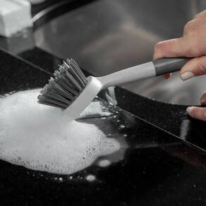 - A escova de cozinha possui cerdas macias, que não riscam as superfícies;
