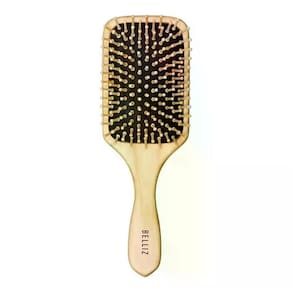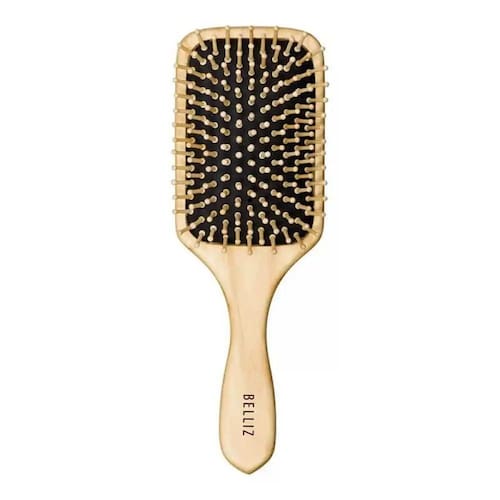 A Escova de Madeira Profissional Térmica Pequena da marca Belliz possui cerdas naturais de javali combinadas com pinos de nailon que permitem a tração ideal para alisamento. Base de alumínio que retém e distribui o calor do secador com mais rapidez.