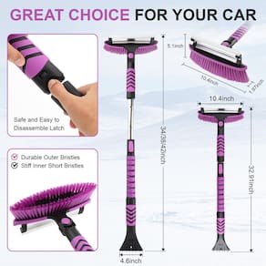 Design de dupla finalidade: possui um raspador de gelo resistente em uma extremidade e uma escova macia que não arranha na outra, removendo gelo e neve de forma eficiente sem danificar seu veículo. - Escova de neve e raspador de gelo 4 em 1: Esta escova de neve combina uma escova de neve, removedor de geada, raspador de gelo e rodo, tornando-a sua escolha para enfrentar o gelo e a neve mais difíceis do inverno. Equipado com uma haste telescópica de 3 posições, ela se estende até 104 cm, perfeita para limpeza de neve doméstica simples e remoção de gelo e neve em veículos maiores. - Escova de neve à prova de arranhões: a cabeça da escova é projetada com cerdas externas macias e cerdas internas resistentes, permitindo que você limpe a neve sem arranhar a tinta do seu veículo. Com uma cabeça rotativa de 270°, a escova de neve para carro alcança qualquer canto facilmente. O verso tem uma lâmina de borracha para descongelar, tornando-a multifuncional. - Aderência confortável: O cabo da escova de neve é envolto em espuma premium e combinado com um eixo de liga de alumínio, facilitando o manuseio mesmo durante o uso prolongado. Seu design leve garante mobilidade suave, bloqueando efetivamente o frio enquanto oferece uma aderência macia e antiderrapante. Isso garante uma fixação confortável e segura durante todo o inverno. - Fácil de armazenar e economizar espaço: este raspador de para-brisa para gelo e neve pode ser desmontado em três partes (escova, raspador e haste telescópica), e cada parte pode ser usada individualmente. Vem com uma bolsa de armazenamento, facilitando a manutenção no porta-malas sem ocupar muito espaço. - O pacote inclui: 1× mastro extensível, 1× cabeça giratória de 270°, 1× extremidade do cabo, 1× rodo, 1× saco de armazenamento. Nossa escova de neve extensível é perfeita para carros e também serve como uma escova de neve para caminhões, um raspador de gelo para SUVs e um removedor de gelo de para-brisa. Não é apenas uma ferramenta de limpeza para o seu veículo, é também um companheiro de segurança essencial para sua condução no inverno.
