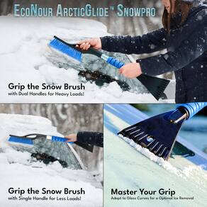 Escova de neve e raspadores de gelo Econour de 27" para para-brisa de carro (pacote com 2) | Escova de neve com cabeça de cerdas sem arranhões e raspador de neve resistente para janelas com corpo de alumínio | Acessórios para carros de inverno para remoção de neve