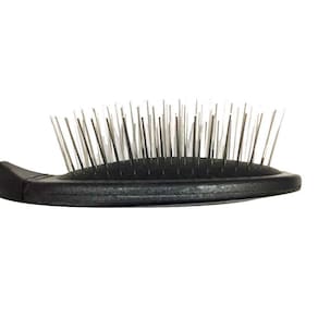 Cachorros de pelagem longa precisam ser escovados com muita frequência, se você não conseguir pentear todos os dias, pode fazer um dia sim, um dia não. Ou em até cada 2 dias, para evitar nós na pelagem e embaraço dos pelos. Esse escova é própria para escovar ou desembaraçar o pelo do seu amigo, possui pinos de metal sem bolinhas na ponta, para garantir uma escovação sem riscos. Mantenha a pelagem do seu cachorro linda e saudável com essa escova sem bolinhas na ponta, própria para cães de pelagem longa Ficha técnica - É massageador: Sim - É tira pelos: Não - Tamanho: M - Comprimento da pelagem recomendado: Longo - Materiais do cabo: Borracha - Animais recomendados: Cachorro - Formato da escova: Luva - Material das cerdas: Aço inoxidável