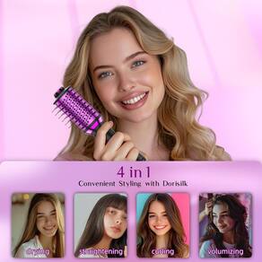 Dorisilk Mini escova de ar quente, sua ferramenta de estilo ideal para resultados maravilhosos em qualquer lugar! Com seu exclusivo barril oval que oferece fluxo de ar de 360° e placas de cerâmica para suavizar sem esforço, esta escova transforma seu cabelo em uma obra-prima deslumbrante com facilidade. Perfeito para todos os tipos de cabelo, possui três configurações de calor ajustáveis (ALTO/BAIXO/AR), permitindo que você personalize sua experiência de estilo para alcançar o visual ideal sempre. Aproveite os benefícios de uma explosão de qualidade de salão em um simples passo, já que a escova combina o máximo poder de secagem com frizz minimizado para reduzir os danos ao cabelo. Pesando apenas 30 kg, esta mini marvel ideal para viagens possui um motor inteligente de 700 W CC que proporciona impressionantes 30.000 RPM, garantindo o máximo de conforto enquanto você estiliza. Observe que este modelo tem voltagem única — prepare-se para elevar o seu jogo de cabelo aonde quer que você vá!