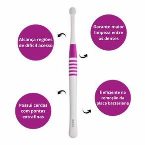 A Escova de Tufos Concentrados Kess foi desenvolvida para complementar a escovação diária. Com a cabeça compacta e cerdas macias, consegue alcançar regiões de díficil acesso. Além disso, suas cerdas possuem pontas extrafinas que garantem maior limpeza entre os dentes.