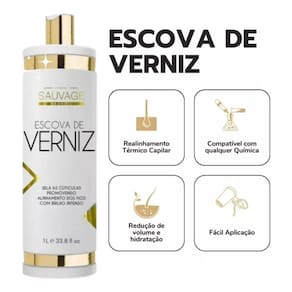 A Escova de Verniz possui fórmula rica em óleo de Ojon e blends com ação emolientes e anti-frizz, que atuam no selamento dos cabelos proporcionando redução de volume, hidratação, liso máximo e com modo fácil e prático de aplicação.