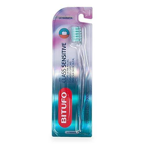 bitufo class sensitive ultra macia escova dental cores descrição:bitufo escova dental sensitive. Tecnologia e inovação para o seu dia a dia. Imagem meramente ilustrativa. O produto pode ter variação de cor ou desenho, porém as características gerais são as mesmas especificadas na descrição do produto. Ação/ativos:maior quantidade de cerdas e acabamento cônico para melhor resultado na escovação. Modo de usar:escove seus dentes adequadamente após cada refeição, três vezes ao dia ou segundo a recomendação de seu dentista. Este kit contém: 01 unidade de bitufo class sensitive ultramacia escova dental cores