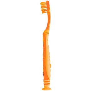 Possui cerdas extra macias em multinível, cabeça compacta, limpador de língua macio, cabo antiderrapante e base de sucção divertida. As Cerdas multinível promove uma limpeza mais efetiva nos dentes de leite e permanentes.