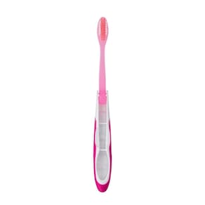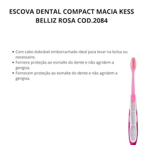A escova Kess Compact tem cerdas macias, polidas e com pontas arredondadas que fornecem proteção ao esmalte do dente e não agridem a gengiva. Com cabo dobrável emborrachado, é ideal para levar na bolsa ou necessaire!