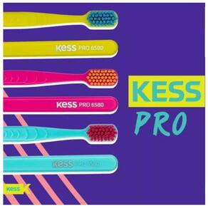 Escova dental com cerdas feitas de um material diferenciado, importado da Alemanha, que é tão fino quanto um fio de cabelo! Por isso, são ainda mais macias que as tradicionais, que tem cerdas de nylon.E o resultado disso é LIMPEZA EFICIENTE e CONFORTÁVEL!Devido a quantidade e a espessura das cerdas, as escovas da linha Kess Pro atingem áreas inacessíveis às escovas comuns. As cerdas especiais ainda conseguem neutralizar a força excessiva durante a escovação, agredindo menos as gengivas.