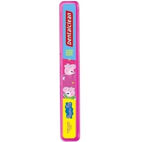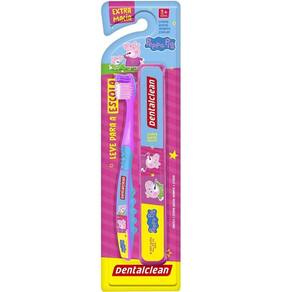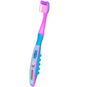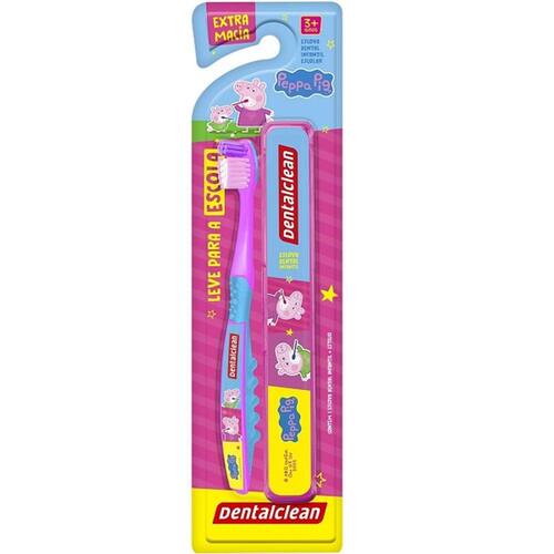 Escova Dental Infantil Escolar Peppa Dentalclean possui cabo emborrachado, cerdas arredondadas e polidas que garantem conforto na hora da escovação.