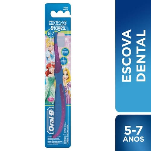 A Escova Dental Infantil Oral B - Stages 5 e 7 anos foi desenvolvida para crianças que requerem menor ajuda na escovação, quando os dentes permanentes estão começando a nascer e os dentes de leite a cair. Cabeça com bordas protetoras desenhada para ajudar a proteger gengivas frágeis. Cerdas de longo alcance desenhadas para ajudar a limpar os dentes de difícil alcance. Cerdas com desenho côncavo para envolver e limpar os dentes. Cabo com apoio para manter a escova estável.