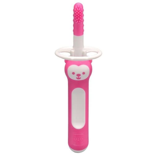 A inovadora Escova de Dentes com Massageadora - Girls da MAM. Funciona perfeitamente de duas maneiras: para massagear a gengiva e limpar os primeiros dentes. - Cor: rosa - Com trava de segurança - Livre de BPA e BPS - Para maiores de 3 meses - Fácil de segurar - Massageia a gengiva e limpa os primeiros dentinhos - Cabo ergonômico e antideslizante - Cerdas macias na frente. - Diferentes estruturas de massagem nas laterais e na parte de trás da escova. -A cabeça da escova é arredondada com material macio e suave para as gengivas, lábios e bochechas do bebê. - Formato ergonômico - fácil de segurar. - Desenvolvido com especialistas médicos. Todos os materiais atendem aos requisitos das normas de qualidade Europeia EN71-3. Este produto atende aos requisitos da norma de qualidade Europeia ISO 20126. Ean: 9001616705182