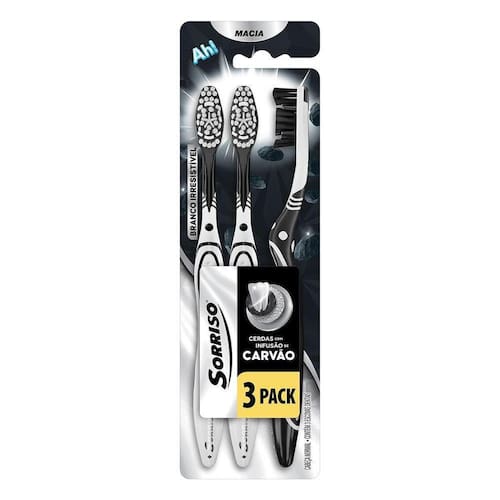 Desfrute de uma boa escovação com a escova de dentes Sorriso Carvão que possui cerdas com infusão de carvão e estrela polidora que remove a placa e de manchas superificiais. Ela também ajuda a revitalizar o brilho natural dos dentes.