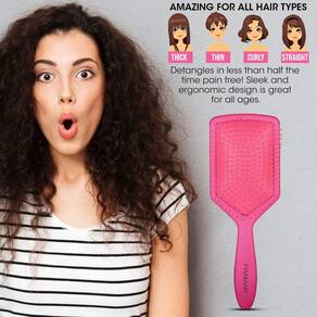 PRODUTO INTERNACIONAL. Tenha cabelos mais cuidados e desembaraçados com a Escova de Remo Framar Detangler! Agora, o sofrimento de lidar com emaranhados e nós ao escovar o cabelo pertence ao passado. Sua bela cor Rosa torna-a um acessório de beleza para mulheres, homens e crianças