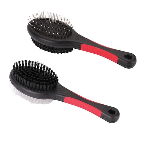 Escova Dupla Para Cães Tutelo - Indicado para cães; - Dupla face; - Ativa o couro do animal; - Retira pelos mortos; - Estimula o crescimento de pelos saudáveis. A Escova Dupla Para Cães Tutelo é perfeita pois possui um cabo prático e fácil para pentear e ajuda a evitar a formação de nós no pelo do animal. A escova é feita com material de alta qualidade e deixa a pelagem de seu cão macia e suave e estimula o crescimento de pelos bonitos e saudáveis. Medidas aproximadas Altura: 15cm Espessura: 6cm Marca: TUTELO