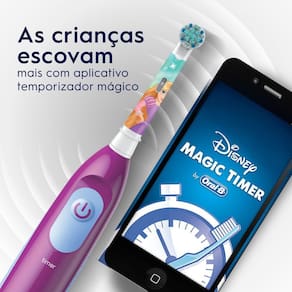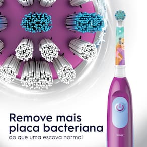 Escova Dental Oral-B Princess Disney + 2 Pilhas AA A Escova de Dentes Elétrica Oral-B Kids Princess para crianças maiores de 3 anos combina a diversão das Princesas Disney com a limpeza suave e eficaz de uma escova de dentes Oral-B. Especialmente projetada para crianças, esta escova limpa os dentes suavemente e remove mais placa bacteriana do que uma escova manual normal, protegendo a saúde do seu filho. Além disso, sua cabeça redonda possui cerdas extra macias que protegem a gengiva dos pequenos. A escova de dentes elétrica Oral-B Kids possui um cronômetro para que as crianças escovem os dentes por dois minutos, tempo de escovação recomendado pelos dentistas, que ajudará seu filho a desenvolver bons hábitos de escovação para toda a vida. A escova é compatível com todos os refis de escovas elétricas Oral-B e possui cabo emborrachado, resistente à água e ergonômico, adaptado para as crianças. Para transformar a escovação ainda mais divertida, Oral-B recomenda o uso do aplicativo Disney Magic Timer, com adesivos, conquistas e muito mais para ajudar na saúde bucal infantil. Projetado especificamente para limpar suavemente os dentes das crianças Cabeça redonda especial para bocas de meninas Filamentos extra suaves cuidam das gengivas mais delicadas Funciona com o app Disney Magic Timer da Oral-B Incentiva a escovagem por 2 minutos, graças ao seu cronômetro embutido e seu temporizador embutido - Contém: 1 Cabo Ergonômico 1 Refil 2 pilhas AA - Compre produtos Oral B Ean: 4210201334712