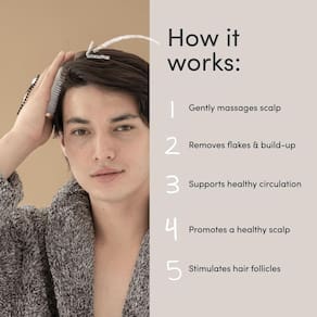 Jupiter Escova massageadora esfoliante para couro cabeludo - Nossa escova esfoliante para couro cabeludo, uma "Vencedora do Prêmio de Beleza" de Saúde, ajuda a remover o acúmulo de produtos de descamação e modelagem. Escove suavemente o couro cabeludo em movimentos circulares antes de lavar ou no chuveiro como uma escova de xampu enquanto faz espuma. Bônus adicional: um couro cabeludo mais limpo significa um cabelo mais espesso e saudável. - Jupiter A escova de couro cabeludo personalizada da foi projetada para ser diferente de qualquer uma das escovas de couro cabeludo atualmente disponíveis. Com cerdas suaves e eficazes de altura variável, a escova tem como alvo o cabelo e o couro cabeludo. O recurso de anel de dedo com design exclusivo também torna a escova mais fácil de segurar durante a lavagem. - Qual é o benefício de uma escova de couro cabeludo? - A remoção do acúmulo no couro cabeludo e no cabelo permite que o oxigênio e o xampu alcancem e tratem efetivamente o couro cabeludo, enquanto também estimula o fluxo sanguíneo saudável para o couro cabeludo. - Pode ser usada como uma escova de cabelo seca ou molhada, é a ferramenta perfeita para cabelos mais lisos e brilhantes. As cerdas de várias camadas permitem um desembaraçamento indolor e são. Suave o suficiente para cabelos finos, tingidos ou tratados quimicamente, perucas, tecidos e extensões de cabelo. - Jupiter A escova de couro cabeludo da possui um conjunto personalizado que garante que seja impermeável e impermeável, reduzindo o risco de mofo e bolor. A escova é leve (menos de 42,5 g) e pode ser facilmente pendurada no chuveiro com sua corrente de aço inoxidável, armazenada em sua penteadeira ou embalada em sua bolsa.