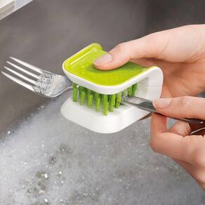 Essa escova própria para facas e talheres vai dar uma boa ajuda na hora de lavar a louça ^^