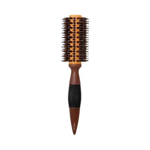 A Escova Vertix Essential Ceramic Cerdas Naturais tem 33 milímetros com base revestida em cerâmica, cerdas 100% naturais, pinos em nylon, cabo com grip de borracha e formato especial para auxiliar na separação de mechas. Seu tamanho médio é ideal para cabelos médios.