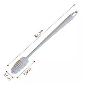 Características: - Possui furo no cabo para pendurar. - Material Cabo e Cerdas: Silicone - Medidas: 25 cm (Comprimento Cabo) x 7 cm (Comprimento Cerdas) / 3,5 cm (Diâmetro Cerdas) x 32 cm (Comprimento Total)