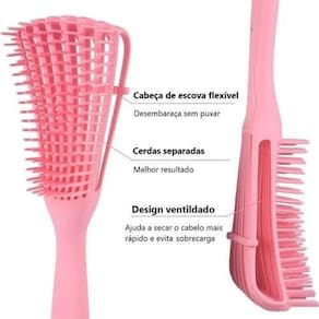 Escova gringa/polvo desembaraçadora de cachos para fitagem Cor: rosa Escova polvo para cabelo cacho - pente polvo indolor - sem dor