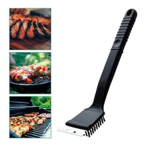 Escova limpa grelha churrasco cabo longo raspador aço inox Escova limpa grelha cabo longo Churras é bom não é mesmo Melhor ainda é ter os melhores utensílios que lhe auxiliam na limpeza depois essa escova limpa grelha é perfeita quando o assunto é limpeza. Por ser de cabo longo favorece ainda mais o manuseio do produto de forma prática Indicado para uma melhor manutenção e limpeza de grelha para churrasqueira. Possui um cabo longo de 45cm de polipropileno, material muito resistente por sinal. E ainda possui lâminas e cerdas em aço inox, facilitando ainda mais a retirada de todo o material que precisa ser limpo na sua grelha. Importante: tenha cuidado ao manusear a escova limpa grelha, pois as cerdas são em aço inox, material cortante e perfurantes. Importante deixar longe do alcance de crianças. Durabilidade: para garantir a durabilidade da sua escova limpa grelha, recomendamos secá la bem logo após a lavagem, mesmo sendo em máquina de lavar louças. -------------------- características --------------------- Cabo longo: polipropileno Raspador: aço inox Cerdas: aço inox Validade: indeterminado Cor: preta Boas compras Positiva shop