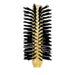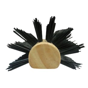 Escova de madeira formato meia lua com cerdas de nylon.