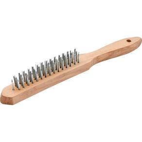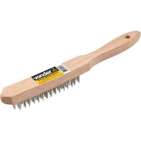 Conteúdo da embalagem1 Escova manual com caboAplicações e dicas de usoIndicada para limpeza de peças em geralDestaques e diferenciaisPossui maior poder de remoção DETALHES TÉCNICOS Material/acabamento das cerdas da escova: Aço carbono/polido Material do cabo da escova: Madeira Material da base da escova: Madeira Número de fileiras de cerdas da escova: 3 fileiras Marca: Não Informado Ean: 7893946012328