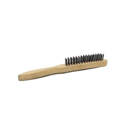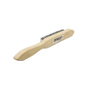 Escova manual com cabo madeira inox 3 fileiras - material/acabamento das cerdas da escova: aço inoxidável - material do cabo da escova: madeira - material da base da escova: madeira - indicada para limpeza de peças em geral. - possui cerdas em aço inox, proporcionando maior resistência à oxidação/corrosão.