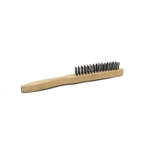 Escova manual com cabo madeira inox 3 fileiras - material/acabamento das cerdas da escova: aço inoxidável - material do cabo da escova: madeira - material da base da escova: madeira - indicada para limpeza de peças em geral. - possui cerdas em aço inox, proporcionando maior resistência à oxidação/corrosão. Marca: Não Informado