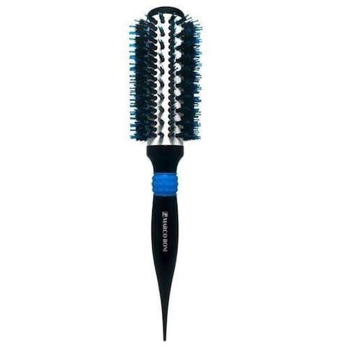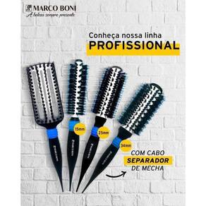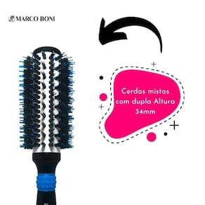 Escova Marco Boni Profissional Azul 34mm 7383 Escova Profissional Azul 25mm Ref. 7382 - Marco Boni - A Escova Profissional Azul da Marco Boni possuem cerdas de dupla altura, com as tufas retas sendo ideal para secagem e escovação dos fios. Seu formato cilíndrico e diâmetro de 25mm, permite que em cabelos de tamanho médio, corra de maneira prática e fácil. Seu cabo emborrachado com separador de mechas, proporciona melhor agilidade em seu manuseio e melhor repartição dos cabelos. - Modo de Uso: Deslize a escova suavemente entre os fios, desembaraçando as mechas e deixando os fios alinhados. - Embalagem: 1 Escova Profissional