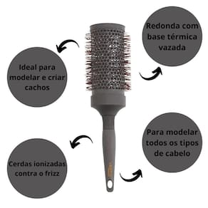 Escova térmica de cerâmica ideal para modelar e criar cachos em cabelos muito longos. Cerdas ionizadas contra o frizz. Escova de cabelo redonda com base térmica vazada de cerâmica e cerdas de nylon ionizadas tamanho grande.