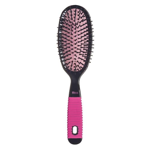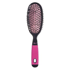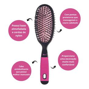 A Escova Oval Black & Pink possui base almofadada que proporcionam uma escovação muito mais confortável e cerdas de nylon com pontas protetoras que massageiam o couro cabeludo e cabo antideslizante.