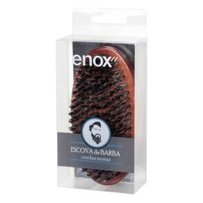 ESCOVA DE MADEIRA OVAL PARA BARBA ENOX Escova de madeira oval para e barba, com cerdas naturais reforçadas, com filamentos de nylon que penetram nos fios e distribuem a oleosidade da raiz para as pontas, deixando barba mais macia.