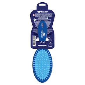 A Escova para Cabelo Oval Azul Zootopia 2 Condor possui base almofadada e pinos arredondados, proporcionando desembaraço suave sem puxar os fios, enquanto massageia delicadamente o couro cabeludo.